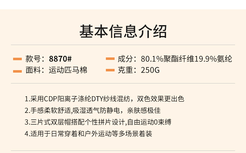 运动匹马棉 80.1%聚酯纤维 19.9%氨纶