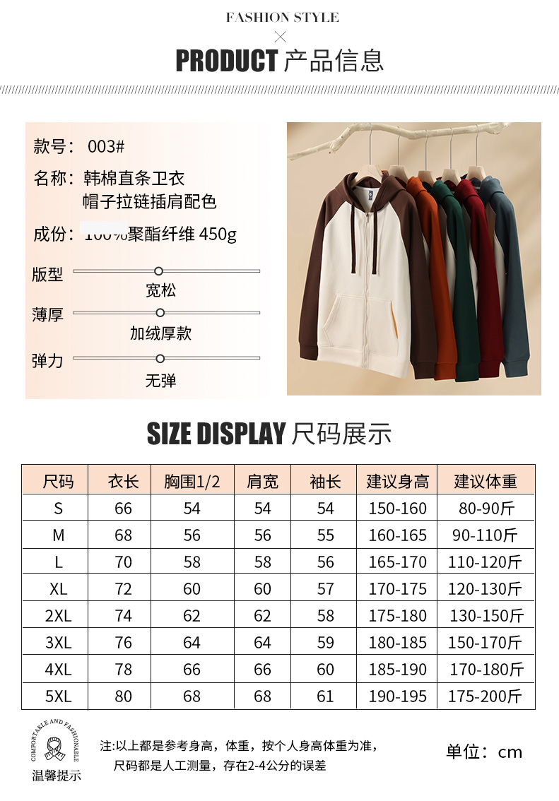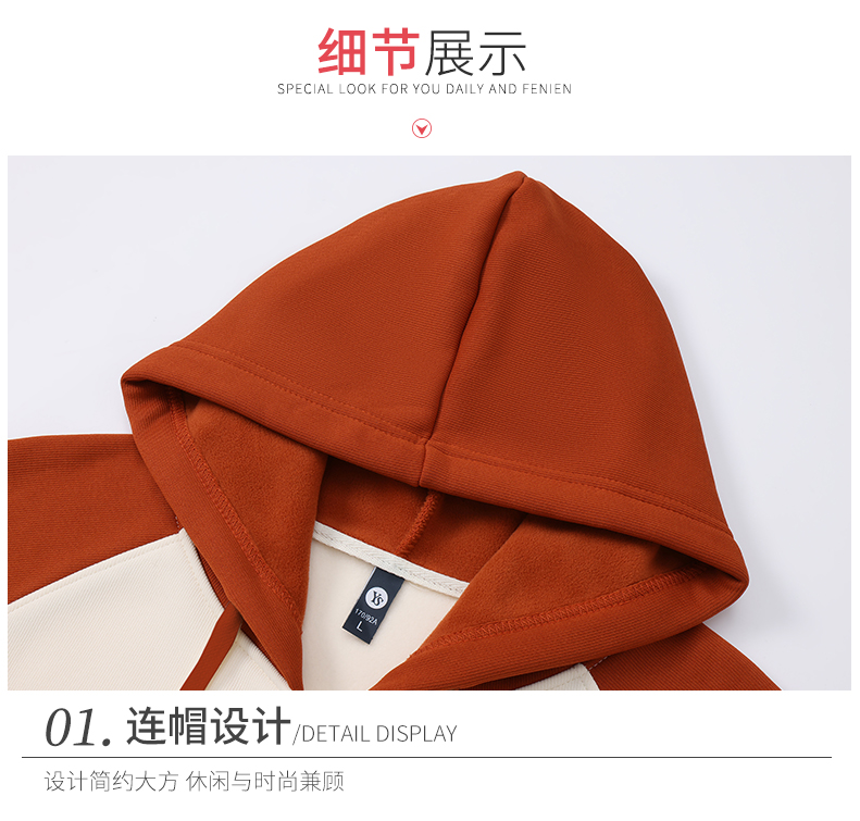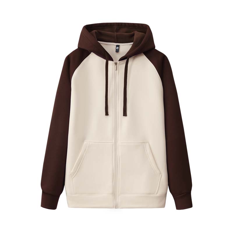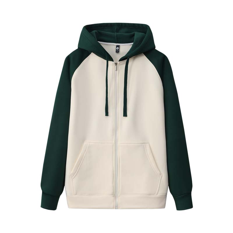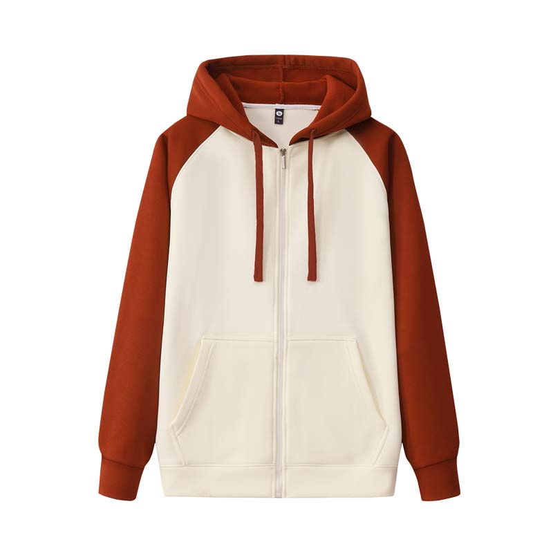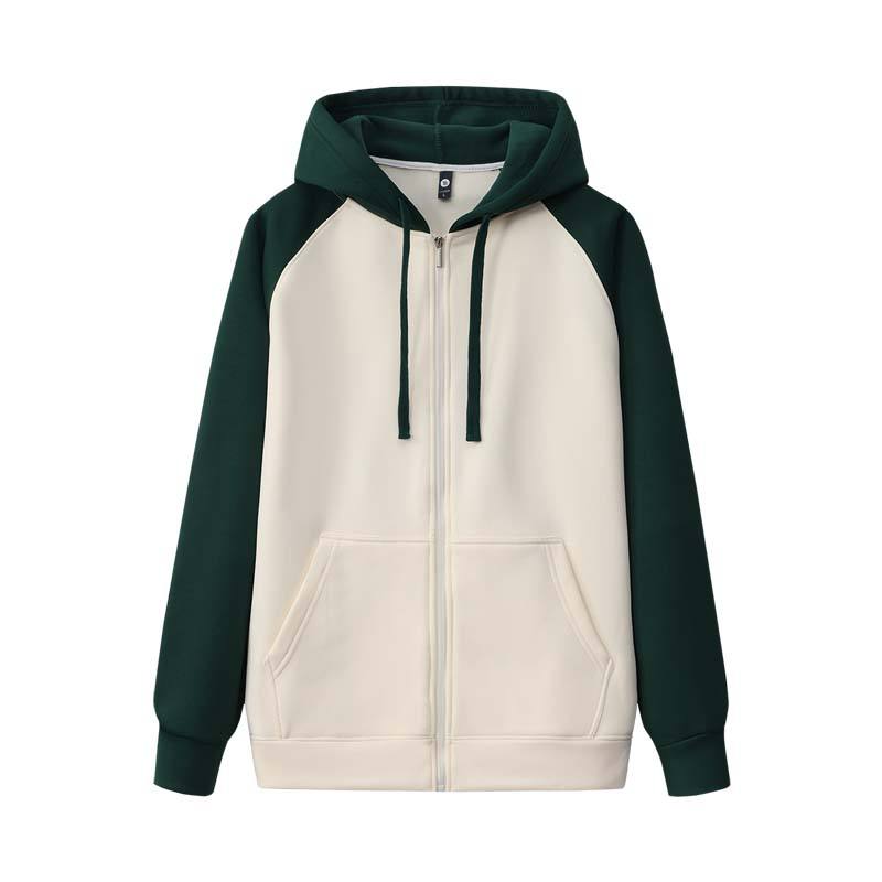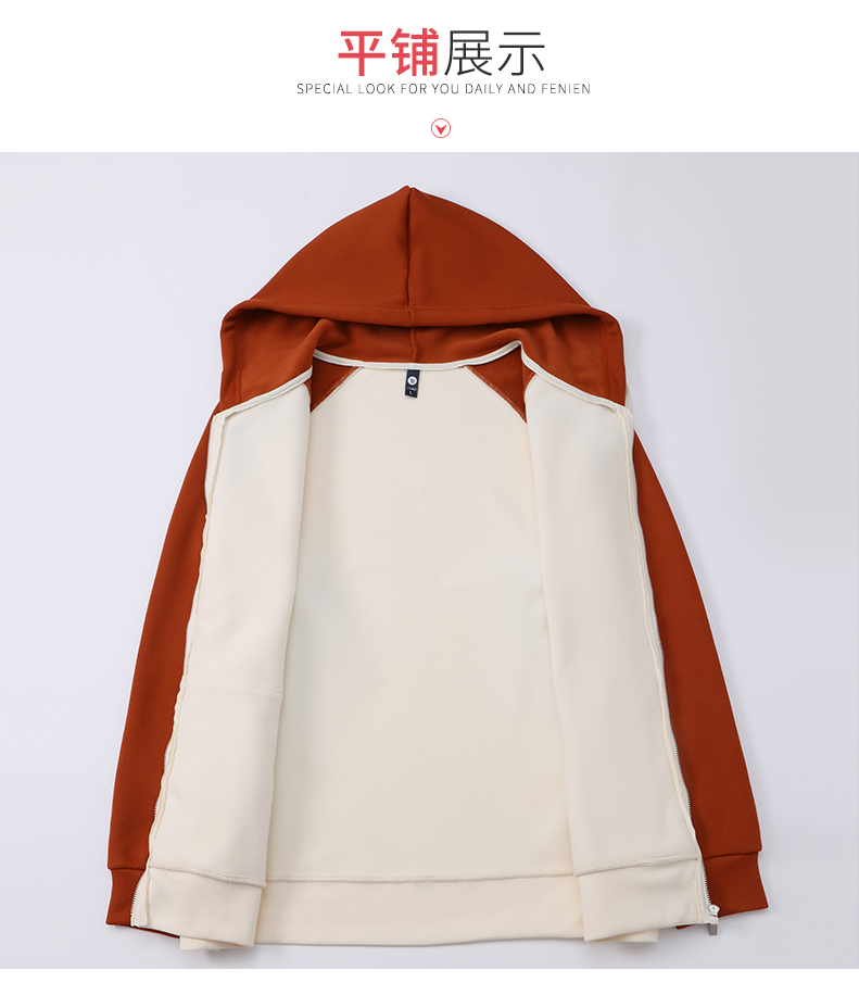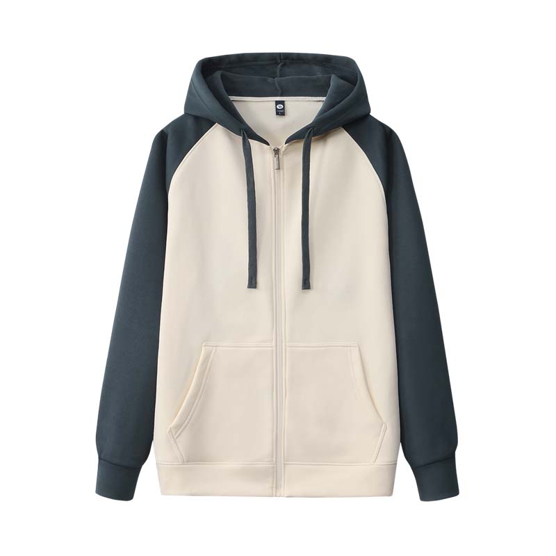 450克加绒厚款宽松插肩袖拼色连帽拉链卫衣定制